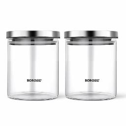 Borosil Classic Glass Jar, Air-Tight Storage Container For Kitchen, Glass Jar For Storing Spices, Snacks, Grains, Dals, Set of 2 (600 ml each), Clear