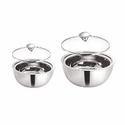 Borosil - Stainless Steel Insulated Curry Server, Set of 2 (500ml + 900ml) Silver