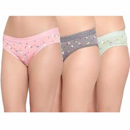 BRUCHI CLUB Women's Pure Cotton Printed Hipster Panties (Pack of 3) (L) Multicolour