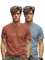 BULLMER Men Cotton Blend Regular Fit Trendy Printed Crew /Round Neck Half Sleeve Tshirt - Pack of 2_Brick/Bluish Grey_X-Large
