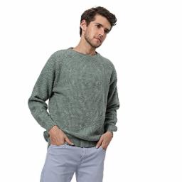 Campus Sutra Men's Sage Green Textured Regular Fit Sweater for Winter Wear | Round Neck | Full Sleeve | Woolen Sweater | Casual Sweater for Man | Western Stylish Sweater for Men