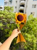 Craftycrook Crochet Sunflower Decor, Knitted Fake Sunflower Crochet Artificial Daisy with Stem Decoration Handmade Sun Flower Bouquet for Table Centerpieces Gift