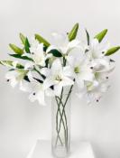 VRB Dec Plastic 1 Pcs (3 Head) Lily Artificial Flowers Bunch Foam Flowers Sticks,Lily Artificial Flowers for Home Decor,Bedroom, Living Room, Table, Balcony, Office, Wedding, Pooja (White Color)
