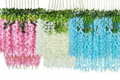 Tia Crafts Polyester Artificial Hanging Flowers For Ceiling Balcony|Wisteria Vine|Home Party Decor Garden Outdoor Greenery Office Wall Decoration|Waterproof Washable-3.7Ft/45 Inch(Mixed,12)