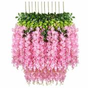 HOME BUY Artificial Wisteria Decoration Hanging Flowers Outdoor, Festivals, Christmas, Diwali, ganpati, Home,Party,Wedding,Baby Shower,for Garland Long Hanging Decor -Pink (Pack of 12), Silk Plastic