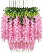 Tia Crafts Artificial Hanging Flowers for Ceiling Balcony | Purple Wisteria Vine | Home Party Decor Garden Outdoor Greenery Office Wall Decoration |Waterproof Washable 3.7ft/45 Pack of 6 (Pink, 6)