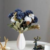 SATYAM KRAFT 1 Bunch Artificial Dahlia Peony Flowers Fabric Bouquet for Home, Office, Bedroom, Living Room, Wedding, Events, Birthdays, Festivals & Gifting (Fabric, Without Vase, Blue)