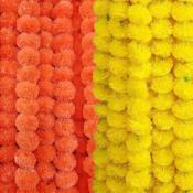 AUDBOT Artificial Marigold Garland Combo Pack of 10 (5 Orange & 5 Yellow) | Diwali Decoration for Home | Flowers Garland for Ganpati, Pooja, Festival, Wedding Decor, Backdrop Decoration