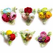 Craft Shop India Artificial Peonies Flower with Grass Filler Brooch for Hamper, Decoration, Gifting, Trousseau Packing | Artificial Flower Bunch Hamper (6, Multi Color)
