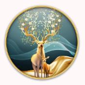 Dharvika Innovations Deer 3D Scenery photo frame for wall decoration, paintings for living room, round golden slim frame with premium sparkle lamination 3D 10218 (12×12 Inch) (Without Glass)