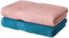 Amazon Brand - Solimo 100% Cotton 2 Piece Bath Towel Set, 500 GSM (Turquoise Blue and Baby Pink)