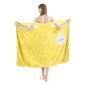 HOUSSE Wearable Spa Bath Towel for Women | Soft, Cozy Wrap with Snap Closure | 110 x 140 cm (Lemon Yellow)