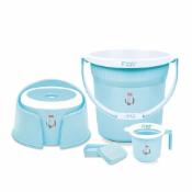 MILTON Plastic Duplex Spa 3 Piece Set, Blue | 25 litres Bucket with Mug & Stool | Bathroom Accessory Set