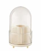 ginoya brothers Makeup Brush Holder Organizer with Lid, 360° Rotatable 7 Campatment Cosmetic Makeup Brushes Storage Round Stand for Vanity or Bathroom - Dustproof & Waterproof. (CREAM)
