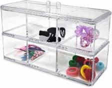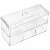 Snazzy Clear Acrylic Make Up Organizer Box Double Deck Dresser Container Case with Lid for Jewelry Cosmetic Bathroom Storage Holder For Cotton Ball And Swab, (6 Compartment)
