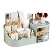 ZUKU MakeUp Organizer Stand Desk Storage Dressing Table Organiser Cosmetic Organizer Box Skin Care Table Bathroom Organiser Makeup Storage Box Makeup Vanity with Transparent Drawer(Green)