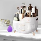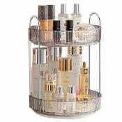360° Rotating Makeup Organizer Box - Cosmetic Storage with Drawers, Plastic Makeup Holder Stand for Dressing Table, Lipsticks, Nail Polishes & Accessories (Light Gray, 2 layer)