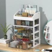 OANGO 4 Layer Cosmetic Makeup Cosmetics Organizer With Drawers Plastic Storage Box Desktop Sundry Storage Case (White)