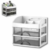 Cosmetics Organiser Makeup Desk Storage Box Organiser with Drawers for Dressing Table, Counter top, Bathroom Counter, Elegant Vanity Holder for Brushes (Make Up Organiser for Women) Plastic, White