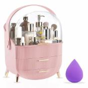 OCEANEVO Cosmetic Makeup Organizer Box for Women with Makeup Sponge, Dressing Table Storage Organizer with Drawer for Skincare, Perfume, Lipstick & Beauty Essentials | Model 2 – Pink