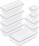 Kienlix Desk Drawer Organizers Trays Set Clear Plastic Storage Bins Bathroom Drawer Tray Dividers Vanity Trays Organizer for Bedroom Dresser Makeup Kitchen Utensil Office (Set Of 9)