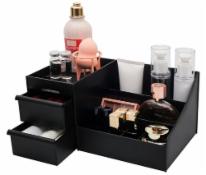 COOFANDY black Makeup Desk Organiser With Drawers, for home & office Plastic Stationary Box, 7 compartments Plastic Case Holder Skin Care Products for Dressing Table