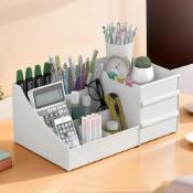 Anshri Desk Makeup Brush Organizers Box and Makeup Organizers for Desk Desktop Storage Stationery Supplies Cute Pencil Cup Pot for Office School Home Makeup Storage Box (White)