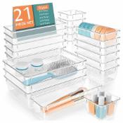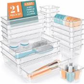 Boniry 21 Pcs Drawer Organizer Tray - Unbreakable Drawer Storage Organizer Set, Dressing Table/Kitchen Organizer, Multipurpose Storage Box for Cosmetic, Jewellery, Desk Organiser Tray (Transparent)