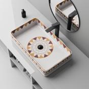 NEXIS Designer Ceramic Wash Basin For Bathroom | Over Counter Bathroom Basin | Counter Top Bathroom Sink | Wash Basin For Restaurant, Hotel, Home (24 x 14 x 5 Inch) (T-1155)
