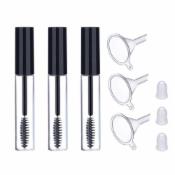 Homeaura® 3Pcs 10ml Empty Mascara Bottle Tube Set with Wand Brush| Eyelash Cream Container Tubes with 3 Funnels | Refillable Eyeliner and Liquid Eyelash Serum Tubes for Castor Oil & DIY Makeup Storage