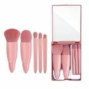 TAMQUSAK 5 in 1 Professional Small Mini Mirror Makeup Brush Kit for Face Eye Shadows Eyeshadow Powder Blush Cosmetic Case Set Cleanser for Women Foundation Travel Brushes for Girl (MINI MAKEUP KIT)