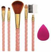 KAYI Women's & Girl's Soft Bristles 5 Pcs White Light Weight Mini Makeup Brushes Set with 1 Pink Beauty Blender - (Pack of 6)