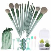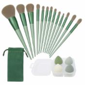 13-Piece Makeup Brush Set – Synthetic Bristles, Soft and Durable with Travel Pouch, Ideal for Blending, and Highlighting, green