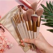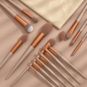 13-Piece Makeup Brush Set – Synthetic Bristles, Soft and Durable with Travel Pouch, Ideal for Blending, and Highlighting, Brown color