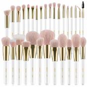 BEILI Makeup Brushes 30Pcs Professional Makeup Brush Set Premium Pink Vegan Synthetic Kabuki Foundation Blending Brush Face Powder Blush Concealers Eye Shadows Make Up Brush Set (White/Rose Gold)