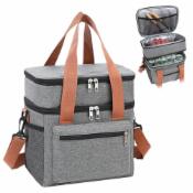 PINZOR Insulated Cooler Bag with Multiple Compartments – Perfect for Travel, Picnics, and Work - for Adult Men Women (Grey)(Extra Large Size)