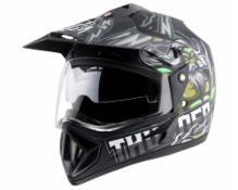 Vega Off Road D/V Thunder ISI Certified Matte Finish Full Face Helmet for Men with Dual Visor and Stylish Peak-Dull Black Grey -M