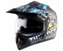Vega Off Road D/V Thunder ISI Certified Matte Finish Full Face Helmet for Men with Dual Visor and Stylish Peak-Dull Black Blue -M