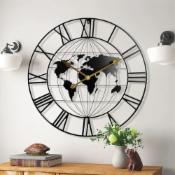 Vintage Clock Abstract Iron Station Analog Clock (12 X 12 Inch, Dial: 12 Inch, Black)