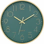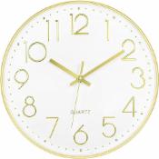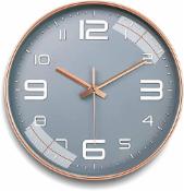 TEKCOOL Wall Clock 12" Silent Quartz Decorative Latest Wall Clock Non-Ticking Classic Clock Battery Operated Round Easy to Read for Room/Home/Kitchen/Bedroom/Office/School - Analog, Plastic Grey Gold