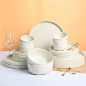 Amazon Brand - Solimo Ceramic Geometric Dinner Set( White ,18 Pieces )