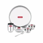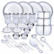 Parage 51 Pieces Heavy Gauge Sanskriti Dinner Set/Premium Dinnerware for Home/Steel Bartan Set for Kitchen, Silver (Serves 6 People)