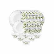 La Opala Novo Collection Opal Glass Crockery | for Family of 6 | Dinner Set 18 pcs Lush Greens | Plates & Bowls for Dining | Microwave Safe | 100% Vegetarian | Extra Strong | Light & White
