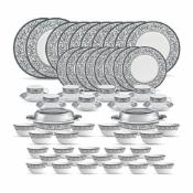 La Opala, Sovrana Collection, Opal Glass Traditional Dinner Set 62 Pcs, Persian Grey, White
