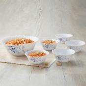 Larah by Borosil Blue Eve Silk Series Opalware 7 Pcs Mini Pudding Set | Microwave & Dishwasher Safe | Bone-Ash Free | Crockery Set for Dining & Gifting | Bowls Set | Floral