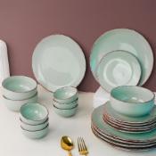 Market99 Minto Blue Sparkle Dinner Set of 20-6 Full Plates, 6 Quarter Plate, 6 Soup Bowl & 2 Serving Bowl for Families, Daily Use, Parties, Unbreakable, Kid Friendly