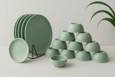 IRIDA NATURALS Wheat Straw Unbreakable Plates Dinnerware 6 Pcs Set, (Mint Green) Lightweight and Eco Friendly Freezer, Dishwasher & Microwave Safe Cups, Plates and Bowls Set for Snacks, Meal etc