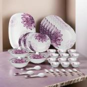 Thermador Melamine 40 Pcs Dinner Set | Crockery Set |6 Dinner Plates, 6 Small Plates, 1 Serving Tray, 3 Big Serving Bowls with Lid, 12 Small Bowls, 6 Spoons, 3 Serving Spoons (White Purple)Floral