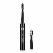 HOMEBASIC Sonic Shine Electric Toothbrush with 6 Dupont Brush Heads, 3 Modes, Smart Timer, USB-C Rechargeable, 50-Days Battery Lasting , IPX7 Waterproof, Quiet Motor, Travel Case – Black, Adult Oral Care