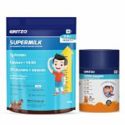 Gritzo SuperMilk Height+ (2-6y), 7g Protein (Double Chocolate, 800g) | Zero Refined Sugar, 21 Vitamins & Minerals with Super Gummies (Natural Orange Flavour, 30 Gummies)